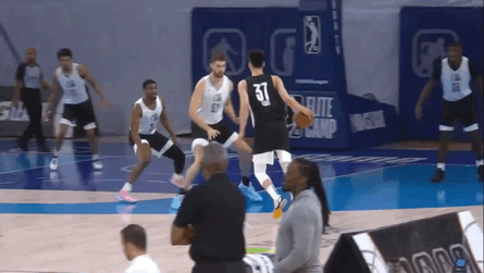 当时有球探来跟我聊,但已经很晚了,很多双向合同都定了,他们想给的训练营合同或者非保障性合同,经纪人说对个人没什么意义,只能去打NBA发展联盟,所以我拒绝了。